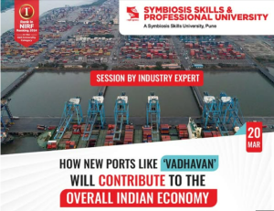 ‘वाधवन’ बंदर कसे भारतीय अर्थव्यवस्थेला योगदान देईल या विषयावर एक अत्यंत माहितीपूर्ण उद्योग तज्ञांची व्याख्यान सत्र सिंबायोसिस स्कील्स ॲन्ड प्रोफेशनल युनिव्हर्सिटी (एसएसपीयू) मधील बीबीए पोर्ट्स आणि टर्मिनल मॅनेजमेंट विद्यार्थ्यांना दिले गेले.