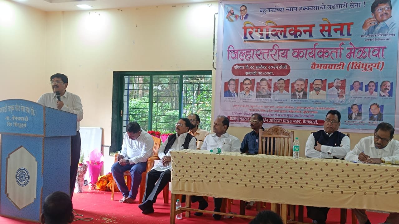 आनंदराज आंबेडकर आपल्या भाषणात पुढे “जातीनिहाय जनगणना ही झाली पाहिजे तरच खऱ्या अर्थाने कोणत्या जातीत किती लोकसंख्या आहे याचा सरकारला अंदाज येऊन त्यांच्या विकास व उन्नतीच्या दृष्टीने पाऊले उचलता येतील म्हणून त्यानुसार प्रथम विचार करून जातीनिहाय जनगणना करावी, कार्यकर्त्यांनी ही आपला पक्ष हा आपला स्वतःचा आहे यादृष्टीने कामांच नियोजन करून काम करा व शिंदेगट शिवसेनेसोबत आपण युती केली आहे ही संधी तुम्हाला चालून आली आहे त्याच सोन करून समाजच हित साधा” असे आवाहन केले. रिपब्लिकन सेना सिंधुदुर्ग जिल्हा कार्यकर्ता संवाद मेळावा जिल्हा अध्यक्ष अनिल तांबे यांच्या अध्यक्षतेखाली डॉ. बाबासाहेब आंबेडकर स्मारक सभागृह (बुद्धविहार), वैभववाडी येथे मोठ्या उत्साहात संपन्न झाला सदर कार्यक्रमाचे सूत्रसंचालन कोकण विभाग सचिव मिलिंद जाधव यांनी आपल्या पहाडी आवाजात व ओघवत्या भाषाशैलीत केले. सदर मेळाव्याचे औचित्य साधून आनंदराज आंबेडकरांनी बाळकृष्ण जाधव यांची जिल्हाध्यक्ष व अनिल तांबे यांनी जिल्हा प्रवक्ता म्हणून निवड करून त्यांच्या नावावर शिक्कामोर्तब केले.