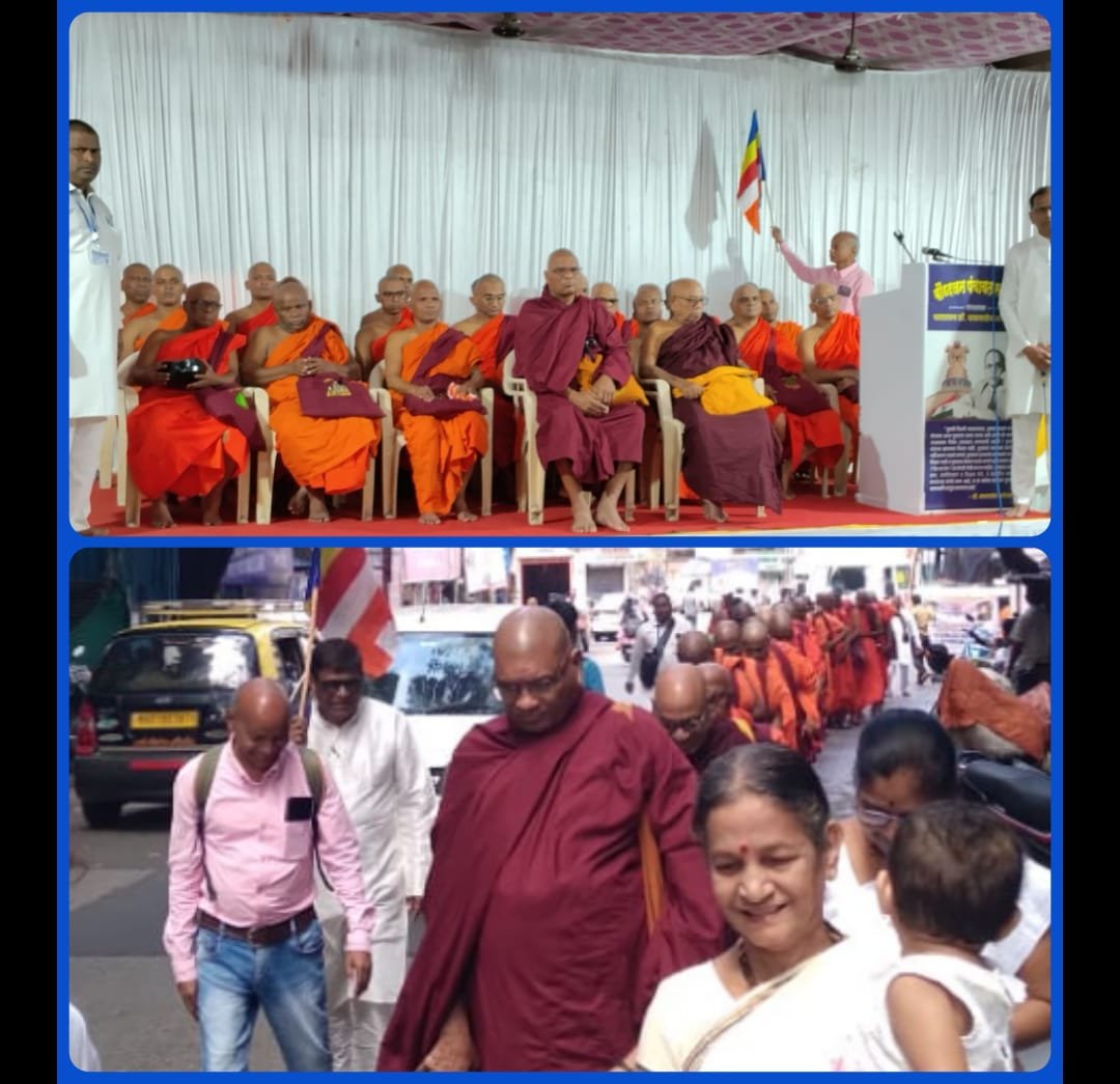 मुंबई दि. २ (रामदास धो. गमरे) बौद्धजन पंचायत समिती संलग्न संस्कार समिती यांच्या संयुक्त विद्यमाने मा. सभापती आनंदराज आंबेडकर यांच्या मार्गदर्शनाखाली आषाढ पौर्णिमा ते अश्विन पौर्णिमा वर्षावास प्रवचन मालिका कार्यक्रम व श्रामणेर शिबिराचे आयोजन करण्यात आले होते. सदर श्रामणेर शिबिराचे संघनायक पूज्य भदन्त डॉ. करुणाज्योती महाथेरो आणि त्यांच्या पूज्य संघाच शिवडी विभागात आगमन होताच भोईवाडा नाका येथे त्यांचं भव्यदिव्य स्वागत करण्यात आले त्यावेळी त्यांच्यासोबत संस्कार समितीचे अध्यक्ष मंगेश पवार गुरुजी, चिटणीस मनोहर बा. मोरे गुरुजी, कार्याध्यक्ष लक्ष्मण भगत, शिवडी विभाग क्र. १३ चे गटप्रमुख राजाभाऊ तथा रामदास धो. गमरे, विभागीय कोषाध्यक्ष प्रविण तांबे गुरुजी, समाजसेवक भाई जाधव, सुवर्णा जाधव, राजेंद्र जाधव, मिलिंद जाधव, गौरी जाधव आणि जाधव परिवार, अशोक बगाडे, भारती बगाडे आणि बगाडे परिवार, प्रभाकर कसबे, विजय भिकाजी कांबळे, अशोक राजू कासारे,मंगेश बाळाराम पवार, महेश्वर साळवी, संतोष दिनकर कदम (रत्नागिरी), प्रतिभा भीमसेन मोहिते व विभागातील मान्यवर कार्यकर्ते मोठ्या संख्येने उपस्थित होते.