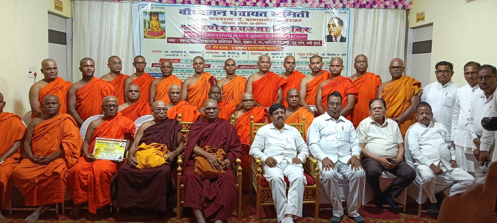 मुंबई दि. ३ (रामदास धो. गमरे) बौद्धजन पंचायत समिती संलग्न संस्कार समिती यांच्या संयुक्त विद्यमाने श्रामणेर शिबिर सांगता समारंभ व ६९ वा धम्मचक्र प्रवर्तन दिन सोहळा पूज्य भदन्त डॉ. करुणाज्योति महाथेरो यांच्या मार्गदर्शनाखाली तसेच सभापती आनंदराज आंबेडकर यांच्या अध्यक्षतेखाली भारतरत्न डॉ. बाबासाहेब आंबेडकर भवन, प्लॉट नं. ६२-ए, सेक्टर नं. २९, वाशी, नवी मुंबई येथे २ ऑक्टोबर २०२५ रोजी मोठ्या उत्साहात संपन्न झाला.