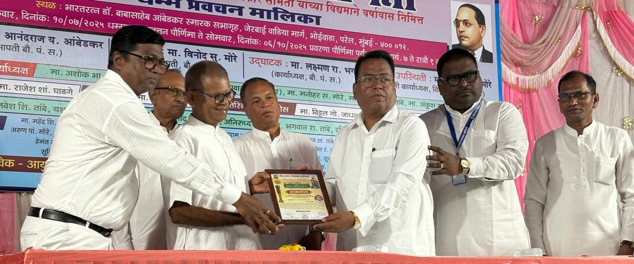 बौद्धजन पंचायत समिती संलग्न संस्कार समिती यांच्या संयुक्त विद्यमाने वर्षावास प्रवचन मालिकेचे आयोजन करण्यात आले आहे त्या प्रवचन मालिकेचे चौदावे पुष्प उपसभापती विनोद मोरे यांच्या अध्यक्षतेखाली डॉ. बाबासाहेब आंबेडकर स्मारक सभागृह, परेल, मुंबई – १२ येथे मोठ्या उत्साहात संपन्न झाले. सदर कार्यक्रमाचे सूत्रसंचालन मनोहर बा. मोरे यांनी आपल्या धीरगंभीर पहाडी आवाजात केले तर मंगेश पवार यांनी प्रस्ताविक सादर केले, प्रस्ताविक सादर करते वेळी बौद्धाचार्य अशोक पवार यांची सभागृहाला ओळख करून दिली, सोबतच स्मारकाच्या निधी करता बौद्धाचार्य, बौद्धाचार्या यांनी सढळ हस्ते धम्मदान करीत आपली मदत ऑक्टोबर पर्यंत जमा करावी असे आवाहन केले, तसेच श्रामणेर शिबिरात सहभागी झालेल्या शिबिरार्थींचे आभार मानले तसेच ज्यांनी धम्मदान स्वरूपात भोजनदान दिले व परिश्रम घेऊन सहकार्य केले त्यासर्वांचे ही आभार मानले.