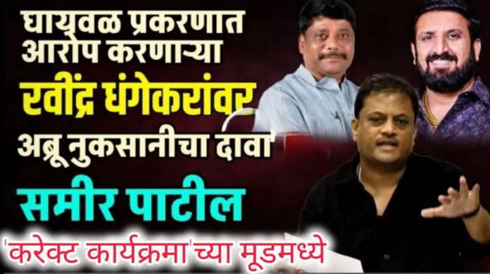 पुणे शिवसेना नेते रवींद्र धंगेकर यांच्याकडून गुंड निलेश घायवळ प्रकरणावरुन भाजपचे मंत्री चंद्रकांत पाटील यांचे निकटवर्तीय समीर पाटील यांच्यावर गंभीर आरोप केल्यानंतर समीर पाटील यांनी रवींद्र धंगेकर यांच्यावर ‘परफेक्ट ठोका मारत करेक्ट कार्यक्रम (सांगली पॅटर्न) करण्याचा दृढनिश्चय केला आहे. राजकीय आरोप प्रत्यारोप या मध्ये माझा कुठलाही विषय नसून माझा संबंध फक्त मी चंद्रकांत दादा पाटील यांच्या कार्यालयात कामाला आहे किंवा काम करतोय हे सिद्ध करावे आणि दुसरे अत्यंत महत्त्वाचे कारण म्हणजे मी मकोका आरोपी आहे. या दोन गोष्टी जर सिद्ध केल्या नाहीत तर 50 कोटी रुपयाची अब्रू नुकसानी द्यावी लागेल अशी न्यायालयात दाद मागण्यात आली आहे.