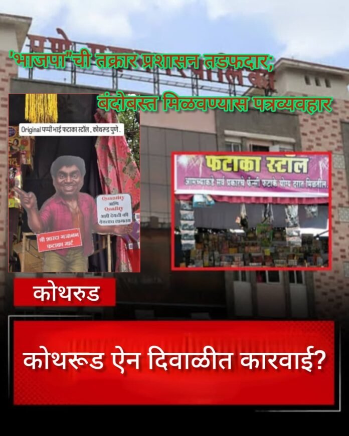 भारतीय जनता पक्षाचे सच एक पदाधिकारी यांना कोथरूड परिसराची अत्यंत संवेदनशील काळजी असल्याने काही दुर्घटना घडली, तर ती टाळण्यासाठी कारवाई करण्याची मागणी त्यांच्या वतीने करण्यात आली आहे. गल्ली ते दिल्ली सत्तेत असलेल्या पक्षाच्या पदाधिकाऱ्यांमार्फतच हरकती घेण्यात आल्यामुळे पुणे महापालिका प्रशासनही प्रचंड वेगाने सूत्र हलवत असून कोथरूड परिसरामध्ये नागरिकांच्या सुरक्षेच्या कारणास्तव सर्व फटाका स्टॉल कारवाई करून ‘भयमुक्त कोथरूड’ची दिवाळी करण्याकडे पालिका प्रशासनाचे लक्ष लागले आहे.