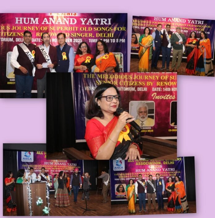 दिल्ली/एनसीआर: एआयएससीएने राजधानी दिल्लीतील वायएमसीए सभागृहात ‘इज आनंद यात्री’ नावाचा एक भव्य सांस्कृतिक कार्यक्रम आयोजित केला. ज्येष्ठ नागरिकांसाठी ज्येष्ठ नागरिकांनी आयोजित केलेल्या एका विशेष कार्यक्रमाने ६० गाण्यांच्या सुरेल सादरीकरणाने प्रेक्षकांना मंत्रमुग्ध केले. “रिक्तता सिंड्रोम” (रिक्तता सिंड्रोम) च्या वाढत्या प्रसाराबद्दल जागरूकता निर्माण करण्याच्या मोहिमेचा एक भाग म्हणून संस्थेने हा कार्यक्रम आयोजित केला होता. या कार्यक्रमाचा उद्देश वृद्धांमध्ये सामाजिक संवाद वाढवणे आणि त्यांना समाजाच्या प्रेमळ पटलात आणणे हा होता.