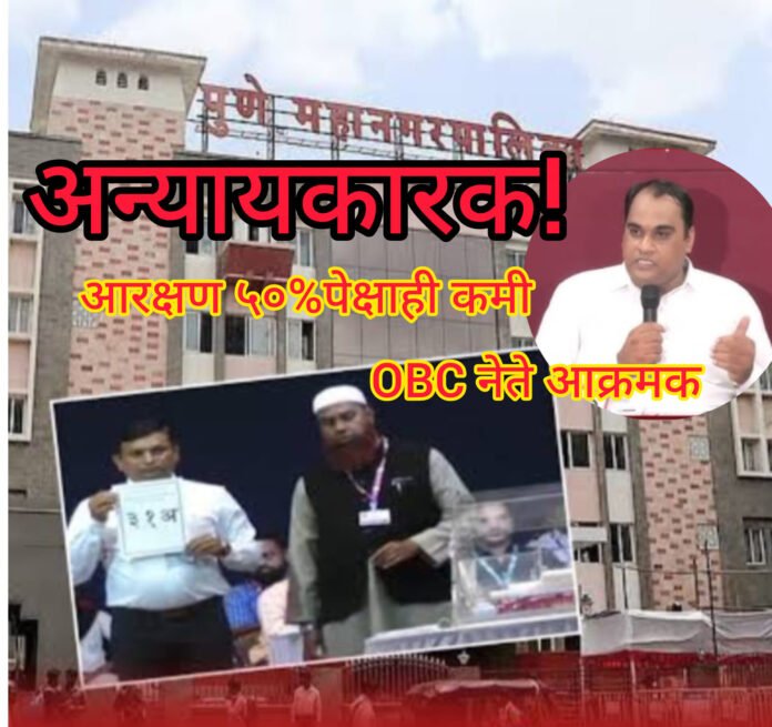 पुणे महापालिकेच्या वतीने राज्य निवडणूक आयोगाच्या सूचनेनुसार आरक्षण सोडत करणे अपेक्षित असताना स्थानिक पातळीवर निवडणूक उपायुक्त यांच्यावतीने 50% पेक्षाही कमी जागेचं आरक्षण जाहीर करण्यात आल्याने संपूर्ण पुणे शहरामध्ये संतप्त वातावरण असून पुन्हा शहरातील आरक्षण वाढवण्याची मागणी ओबीसी संघामार्फत मृणाल ढोले पाटील यांच्या वतीने राज्य निवडणूक आयोगाकडे करण्यात आली आहे. शहरातील नव्या हद्द वाढीनुसार पुणे महापालिकेत एकूण १६५ जागा निर्माण झाल्या असून त्यापैकी अनुसूचित जाती (SC) २२, अनुसूचित जमाती (ST) २, आणि इतर मागासवर्ग (OBC) साठी ४४ जागा आरक्षित पुणे महापालिका निवडणूक उपायुक्त यांच्यावतीने केल्या आहेत. मात्र, एकूण आरक्षित करण्यात आलेल्या फक्त ६८ जागा (४१%) असून राज्य निवडणूक आयोगाच्या वतीने दिलेल्या निर्देशांक प्रमाणे ५०% कायदेशीर मर्यादेपेक्षा कमी आहेत. पुणे महापालिकेमध्ये १६५ जागामध्ये ५०% आरक्षण म्हणजे किमान ८२ जागा संविधानिक अधिकारानुसार आरक्षित केल्या पाहिजेत. पण पुणे महापालिका आयुक्तांच्या अध्यक्षतेखाली फक्त ६८ जागा आरक्षित आहेत. आरक्षित वर्गाचे १४ जागांचे नुकसान होत आहे.