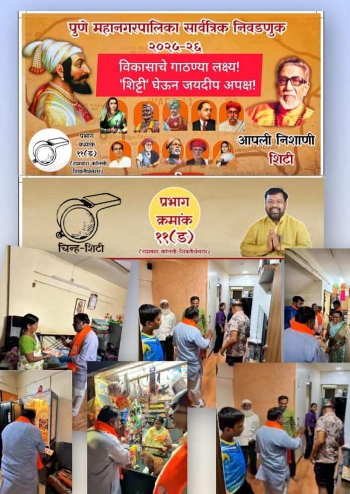 महाराष्ट्राचे आराध्य दैवत श्री छत्रपती शिवाजी महाराज यांच्या विचारांची प्रेरणा घेऊन हिंदुहृदयसम्राट बाळासाहेब ठाकरे यांचा कडवट ‘शिवसैनिक’ श्री. जयदीप पडवळ प्रभाग क्रमांक ११ (ड) गटातून नाते जनसेवेचे कायम राखत परिसरातील नागरिकांच्या विकासाचे लक्ष्य गाठण्यासाठी ‘शिट्टी’ निशाणी घेऊन अपक्ष मैदानात उभा राहिला आहे. देशातील सर्वाधिक मोठ्या पक्षाने केंद्र राज्यातील सत्ता हाती असतानाही या प्रभागातील हितसंबंध जोपासण्यासाठी माना झुकवल्याने एकतर्फी झालेल्या लढतीमध्ये जयदीप पडवळ यांची शिट्टी वाजल्याने प्रभागातील गणिते बिघडली असून सर्वसामान्य नागरिकांसाठी एक चांगला पर्याय निर्माण झाला आहे.