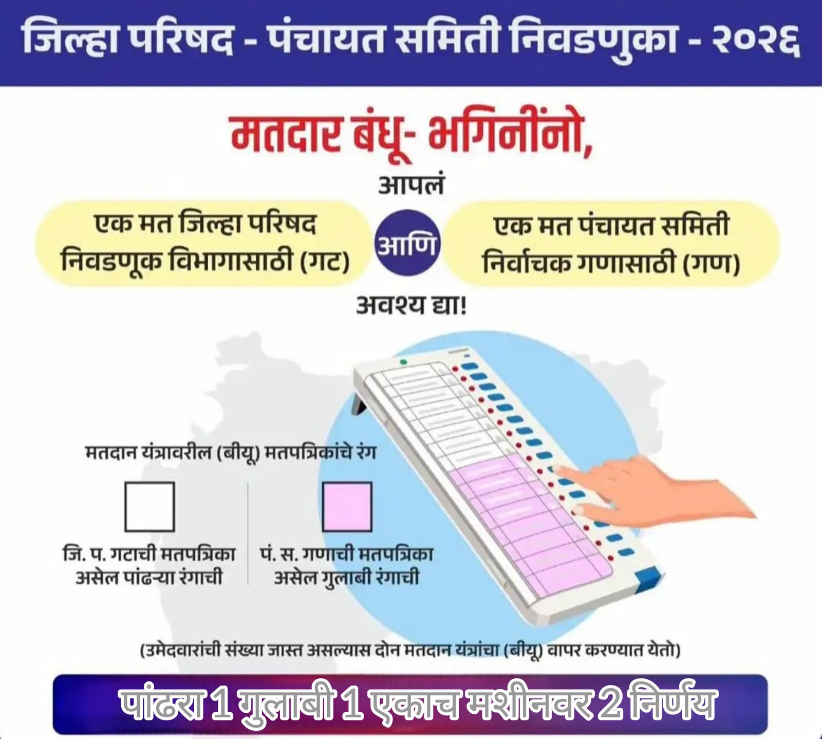 बॅलेटवर जिल्हा परिषद गटाची मतपत्रिका पांढऱ्या रंगात असेल, त्यावर मतदाराच्या जिल्हा परिषद गटातील उमेदवारांची नावे, चिन्हे असतील. दुसरीकडे त्याच मशिनवर पंचायत समितीची मतपत्रिका गुलाबी रंगाची आहे. त्यावर मतदाराच्या पंचायत समिती गणातील उमेदवारांची नावे व चिन्हे असतील, असे अधिकाऱ्यांनी सांगितले.