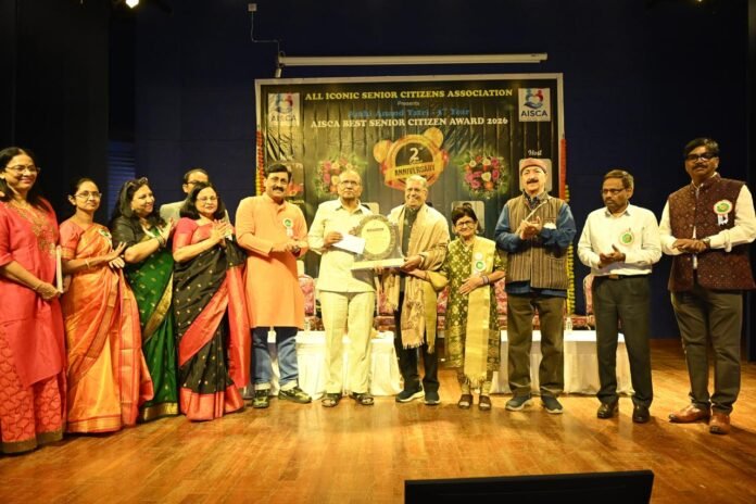 पुणे : ऑल आयकॉनिक सीनियर सिटिझन्स असोसिएशन (AISCA) यांच्या वतीने देण्यात येणारा “बेस्ट सीनियर ऑफ द ईयर” हा पुरस्कार ज्येष्ठ समाजसेवक आणि नवचैतन्य हास्य योग परिवाराचे संस्थापक श्री. विठ्ठल काटे यांना प्रदान करण्यात आला. हा सन्मान सुप्रसिद्ध विचारवंत व साहित्यिक डॉ. सदानंद मोरे यांच्या हस्ते गौरवपूर्ण वातावरणात प्रदान करण्यात आला. या प्रसंगी सुमन काटे यांचाही सत्कार करण्यात आला.