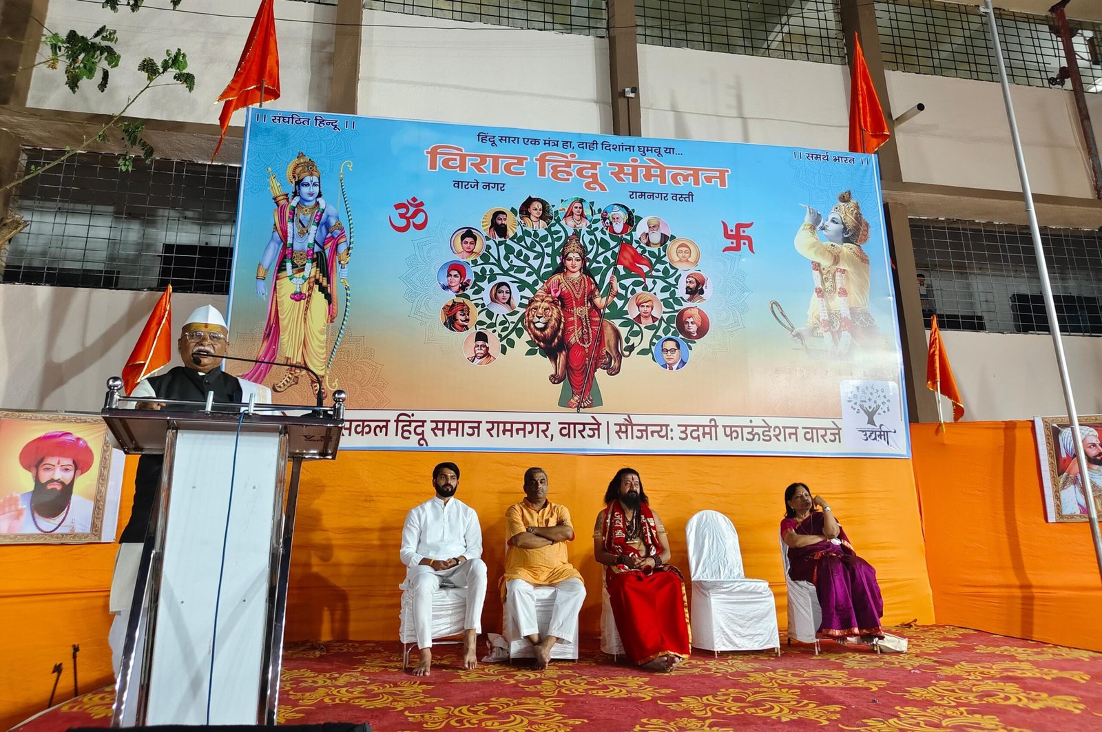 वारजे नगरामधील रामनगर वस्ती मध्ये सकल हिंदु समाज आणि स्थानिक नागरिकांच्या वतीने कै. वनाबाई बराटे प्रा. शाळेच्या भव्य प्रांगणात विराट हिंदू संमेलनाचे आयोजन केले होते. यावेळी कार्यक्रमाची सुरुवात शंखनाद करून मान्यवरांच्या हस्ते दीपपूजन, भारत माता, छत्रपती श्री शिवाजी महाराज आणि सवत्स धेनु (गोमाता व वासरू) पूजनाने झाली. संमेलनाचे संयोजक ह.भ.प. श्री भाऊ महाराज फुरसुंगीकर ह्यांनी आपल्या वारकरी शैलीत कार्यक्रमाचे प्रास्ताविक सादर केले आणि हिंदुसंमेलन का आवश्यक आहे हे साध्या सोप्या भाषेत सांगितले.