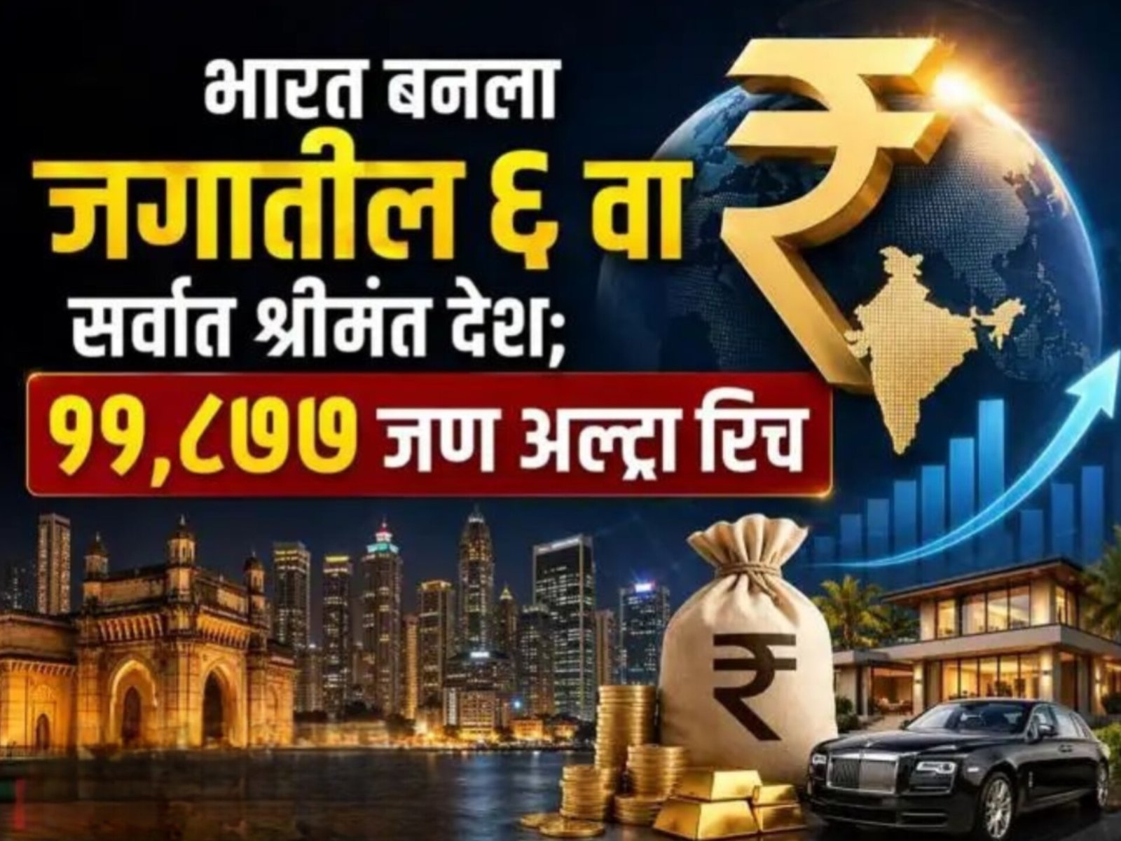 भारतातील श्रीमंतांची संख्या वेगाने वाढत असून, अल्ट्रा-रिच लोकसंख्येच्या बाबतीत भारत आता जागतिक स्तरावर सहाव्या क्रमांकावर पोहोचला आहे. आर्थिक विकास, तंत्रज्ञान क्षेत्र आणि गुंतवणुकीच्या वाढत्या संधींमुळे देशातील संपत्तीत सातत्यानं भर पडत आहे.